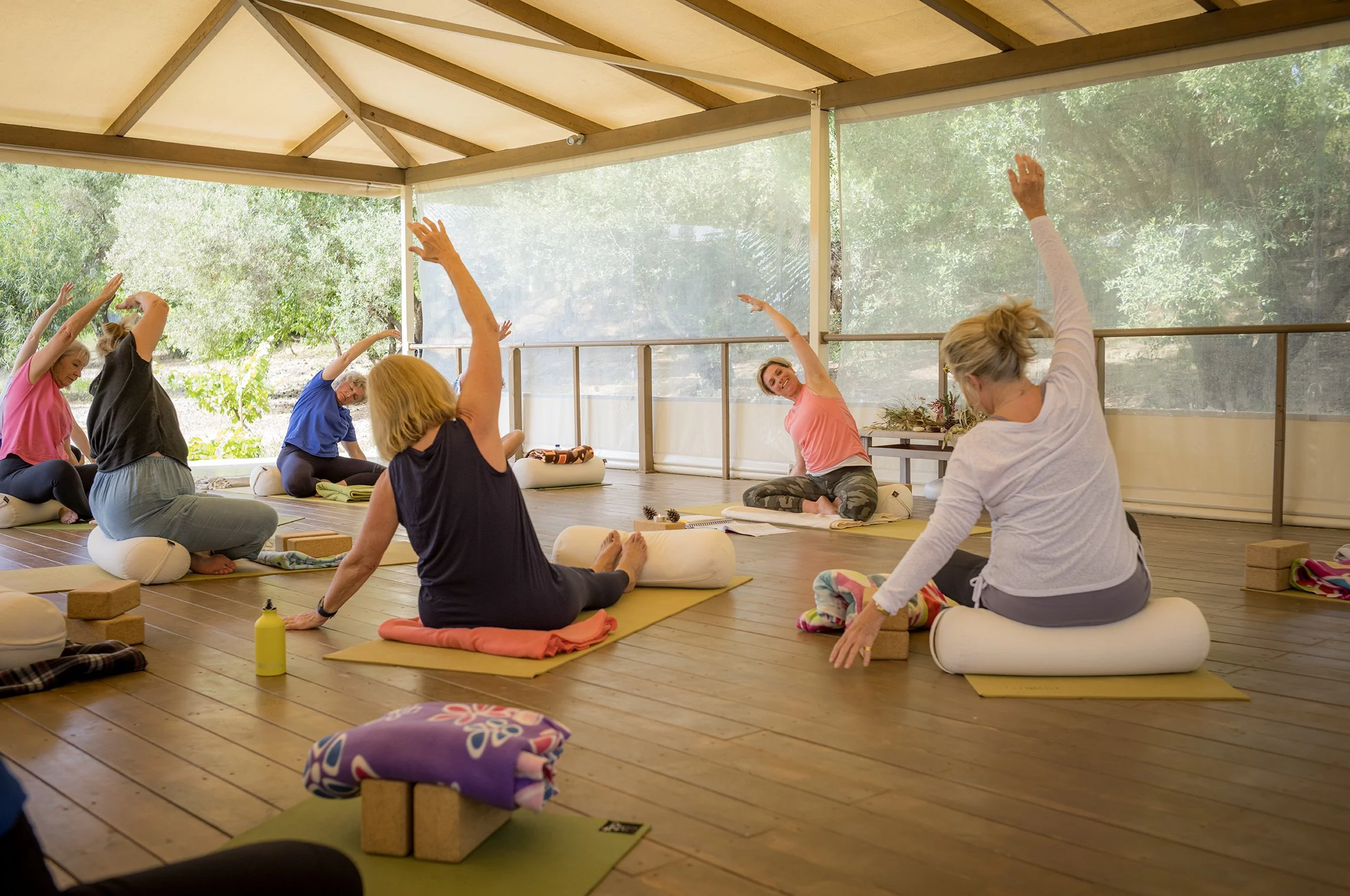 Twice daily yoga sessions (somatic, gentle, strengthening and energising in the morning and restorative, relaxing sessions in the evening- these classes are suitable for all abilities)